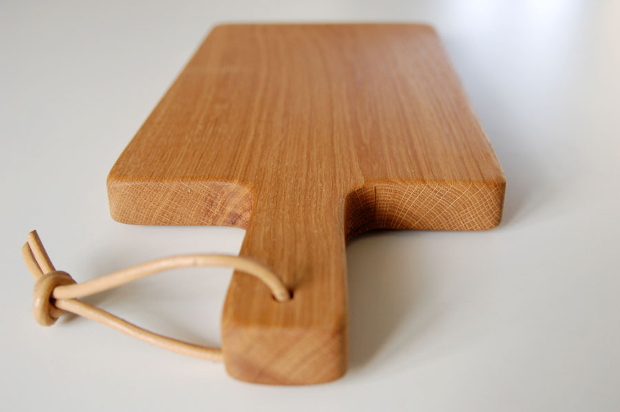 Pungen fra Mandarina Duck skal dog byttes, da jeg jo ikke kan bruge to. Den er ellers også vildt lækker. Pierre har selvfølgelig selv lavet skærebræt til mig. To styk endda i det fineste egetræ.