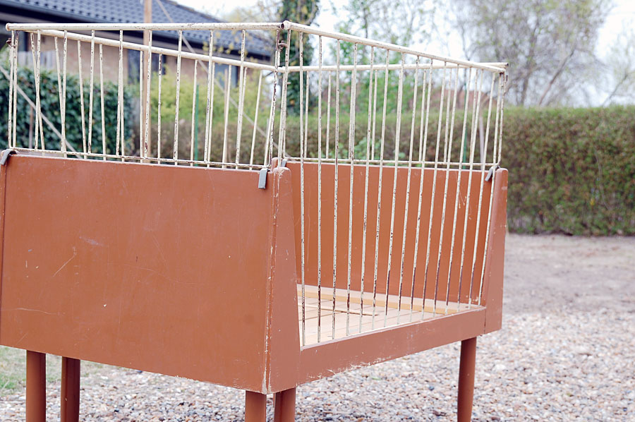 For mere end et år siden, faldt Pierre og jeg over den fine gamle tremmeseng på et loppemarked – total retro. Det skrev jeg lidt om her, hvor der også er flere billeder at finde.