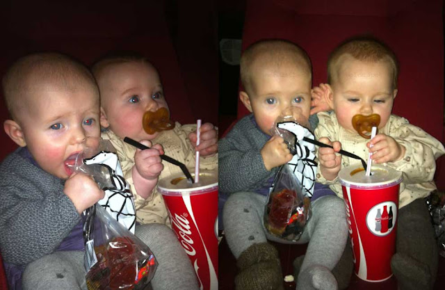 Fordi det var første tur i babybio, var vi selvfølgelig nød til, at gå all in på de usunde sager. Så der røg både cola, slik og popcorn ned i maverne. Og selvom billedet siger noget andet, så fik Thit og Fleur selvfølgelig ikke noget. (bare lige for at slå det fast, så vi ikke bliver stemplet som dårlige mødre. :-))