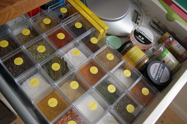 Derfor var det vigtigt for mig, at finde en god løsning her i huset. Søgte efter inspiration på nettet, men folk viser åbenbart ikke deres krydderiskuffer frem. Ærgerligt for mig (og mange andre?), så nu bliver min altså blogget.